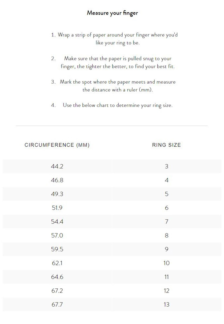 - Measure with an existing ring or your finger and use the ring sizing chart (last 2 photos) to determine your ring size.