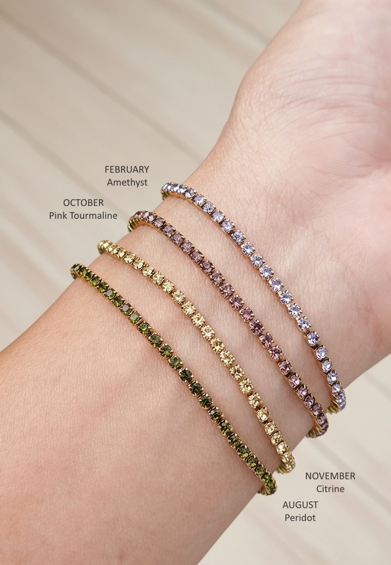 Our Birthstone Tennis Bracelet is a stunning blend of luxury and personalization. Choose your birthstone to create a meaningful piece, perfect for gifting, layering, weddings, or celebrating a special birthday!
