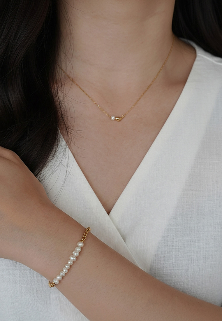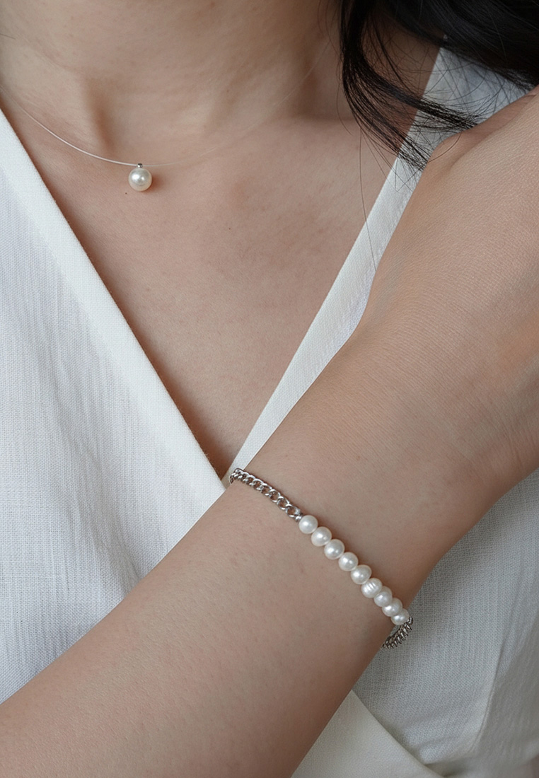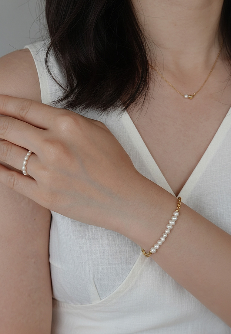 A strand of freshwater pearls add indelible lustre to this chain bracelet that will become a quick favorite in your accessory rotation.