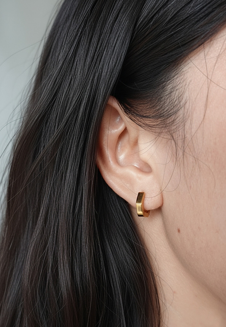 A modern twist on a classic — the Hexa Hoops feature a sleek hexagon shape that blends sharp geometry with timeless elegance. Their minimal silhouette makes them perfect for everyday wear, whether styled solo for a clean look or paired with other pieces for a statement stack.