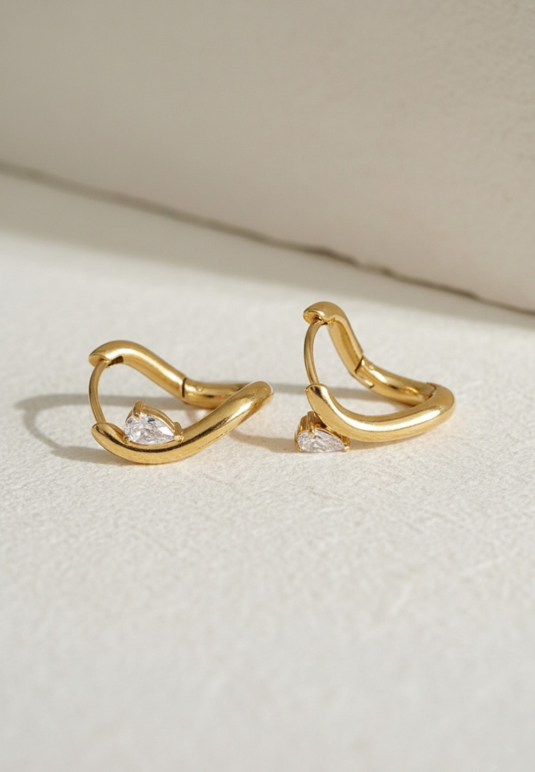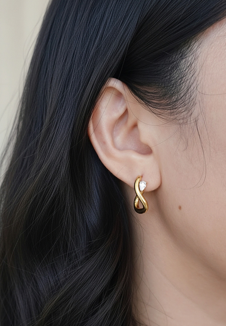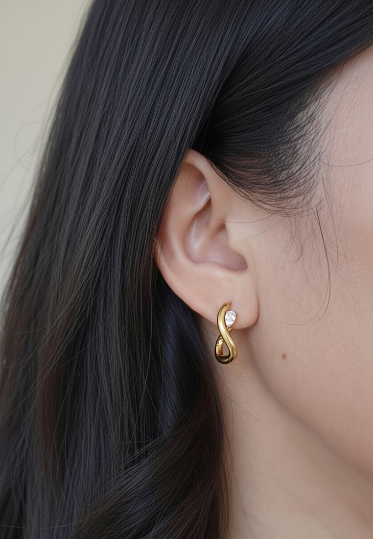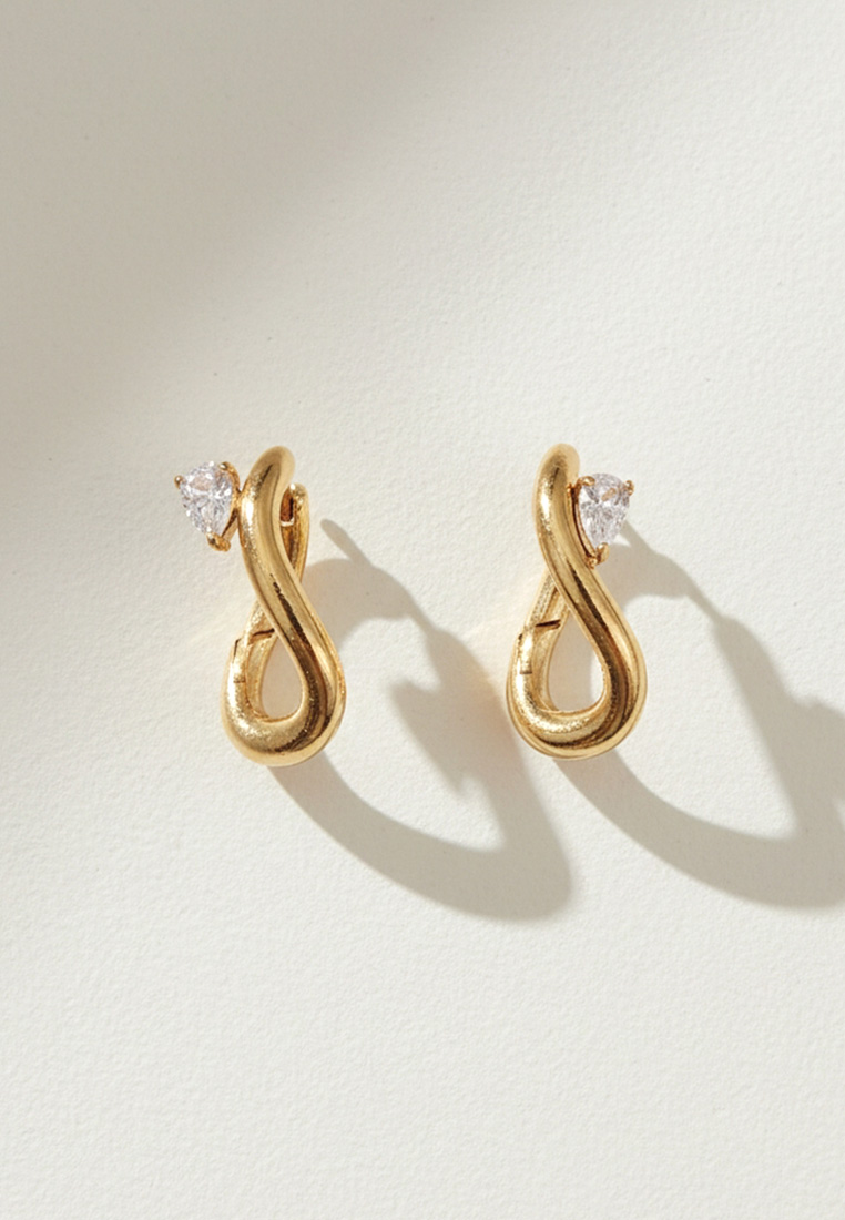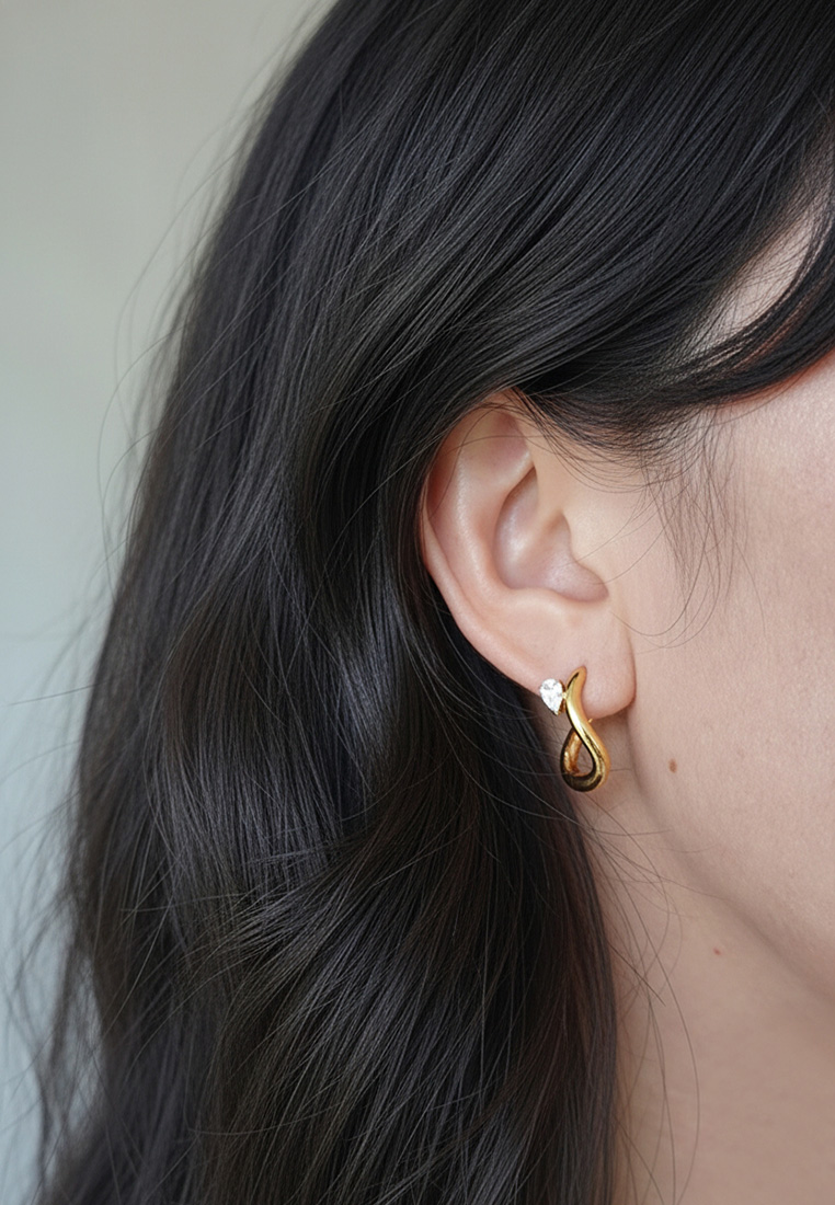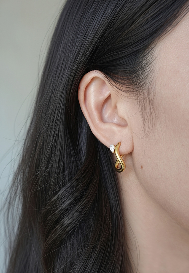 A sophisticated twist on the classic hoop, these earrings feature a fluid, infinity-inspired silhouette in a polished gold-toned finish. Accented with a brilliant pear-cut CZ stone, they offer a touch of modern romance and subtle sparkle for any occasion.