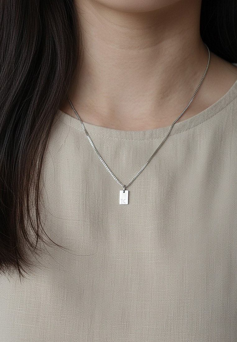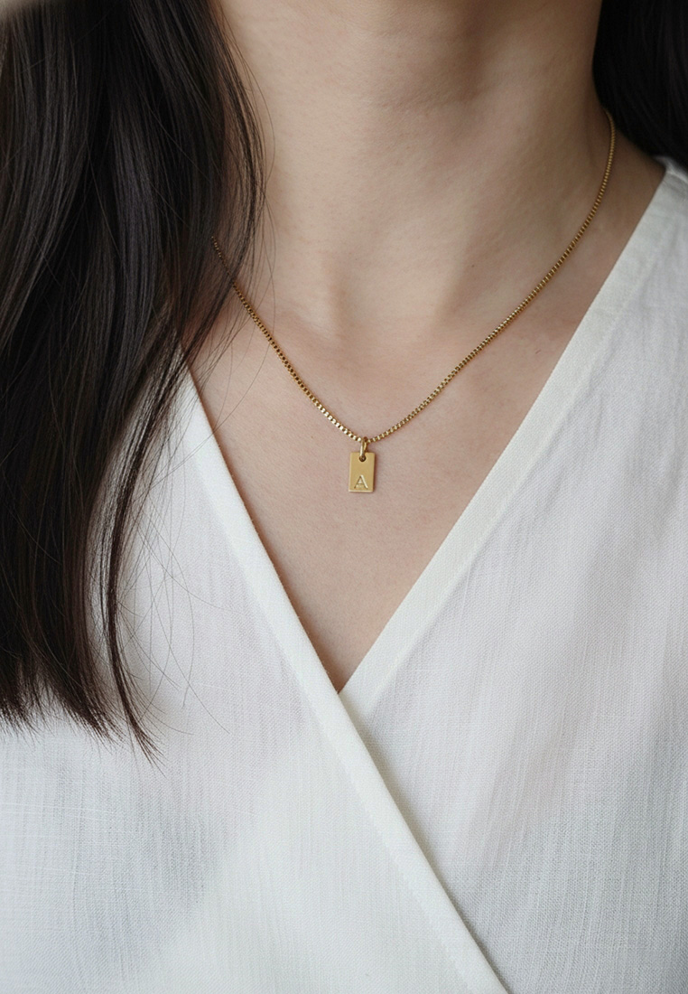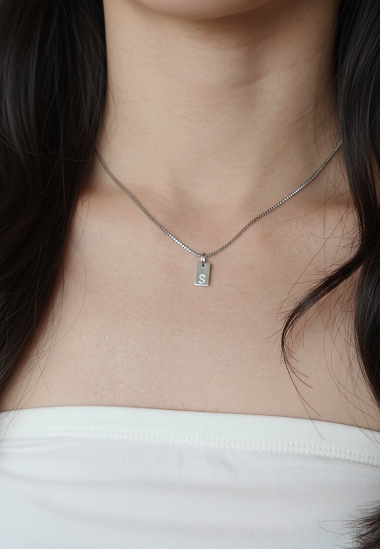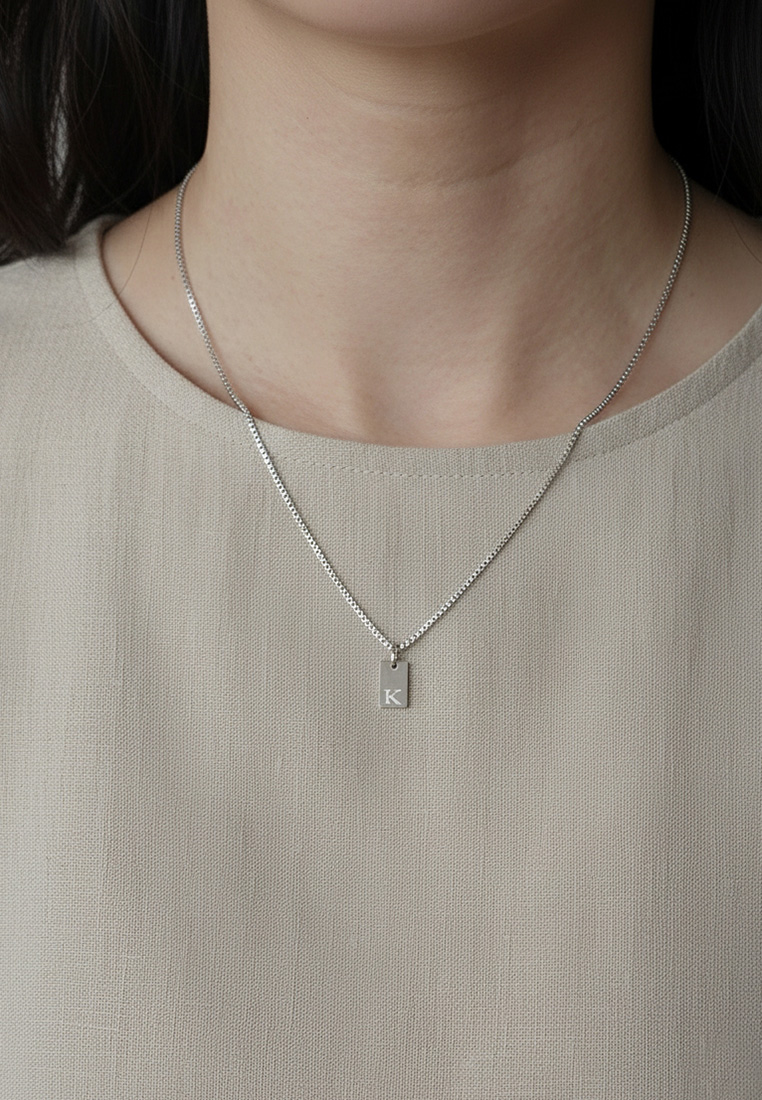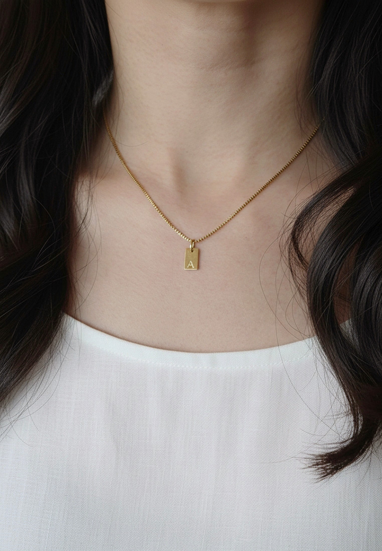 Our engraved Initial Tag Necklace is the perfect way to keep your loved ones close to your heart! A modern update to the classic rectangle tag necklace, personalize this piece with the first letter of your name to the sparkling box chain. This necklace is a stylish accessory wonderful for adding a bit of personal touch to any outfit.