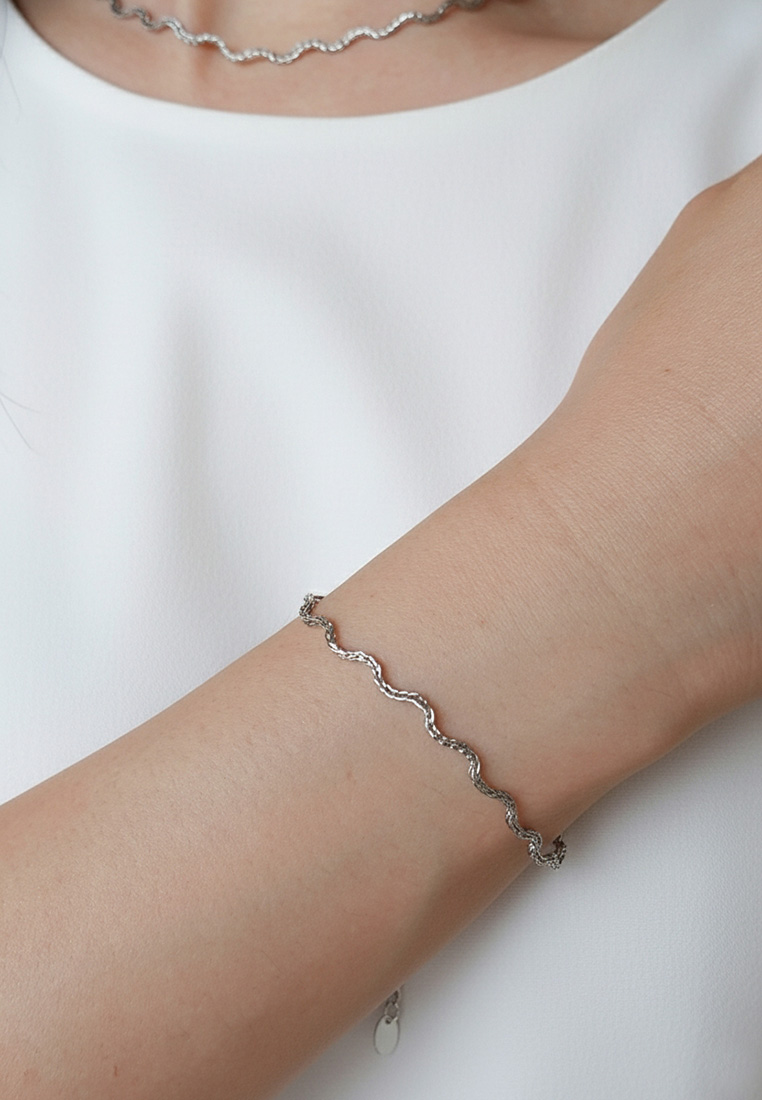 Add a touch of modern elegance with our Wave Twist Chain Bracelet, crafted in a delicate wavy rope design that catches the light beautifully.